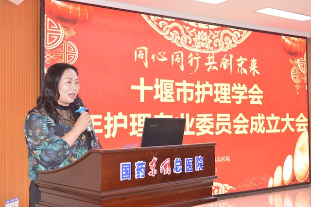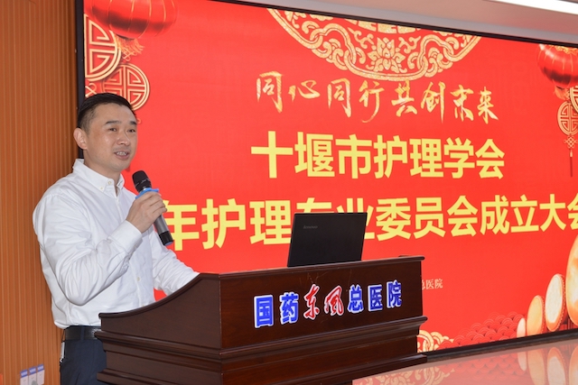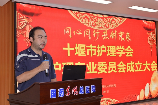 2018年9月20至21日,由国药东风总医院主办的十堰市护理学会老年护理专业委员会成立大会暨老年养老照护新进展学习班召开。湖北省护理学会老年护理专业分会秘书长张丽丽、十堰市医学会卓健西主任、国药东风总医院副院长周文波到会祝贺并讲话。来自十堰及周边县市的百余名老年护理骨干人员参加了本次会议。大会进行了老年护理专业委员会选举,国药东风总医院周琴当选主任委员,闵轶当选秘书。