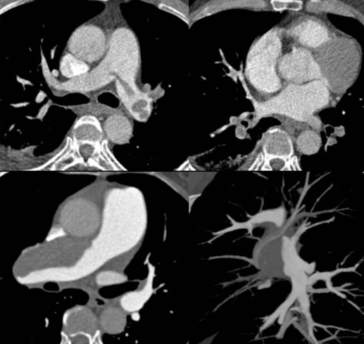 肺动脉CTA是利用CT扫描下的肺动脉造影,优点是基本无创,几分钟就能很好的显示中央及周围肺动脉血管分支情况,通过不同的后处理技术,将肺动脉解剖及病变直接显示出来,是发现肺栓塞的利器。