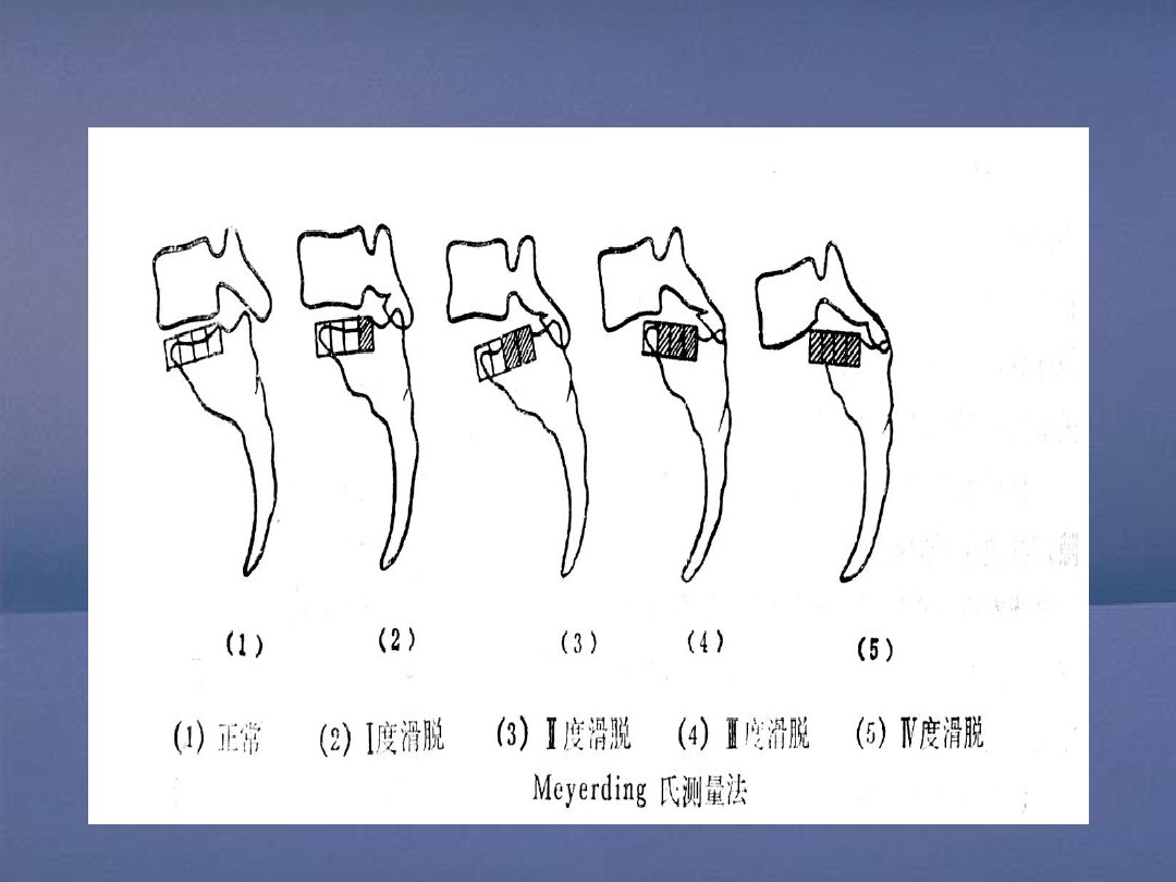 I度:指椎体向前滑动不超过下位椎体前后径的25%。