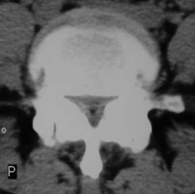 在CT扫描的不同的横断面上,可观察到椎间盘膨出或突出,脊髓内可有囊性改变。