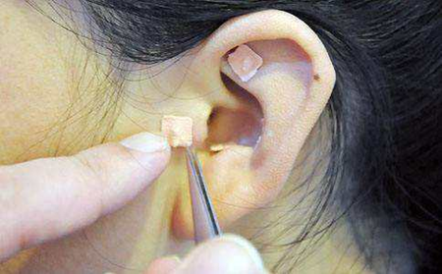 6、耳穴压丸治疗期间,避免耳廓部着水而使胶布脱落,一般疗程较长,应持之以恒。