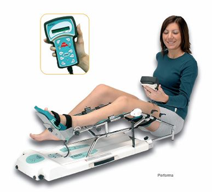 2、将患肢置于CPM机上,应贴紧机器支架,保持外展中立位,保证患肢舒适不受压迫。