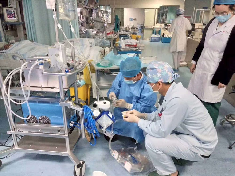 当晚,国药东风总医院急诊科和心血管内科的医护人员迅速赶到竹溪,将患者连夜接回十堰,途中气管插管接呼吸机辅助呼吸,但患者血液循环和呼吸都不好,随时可能死亡。