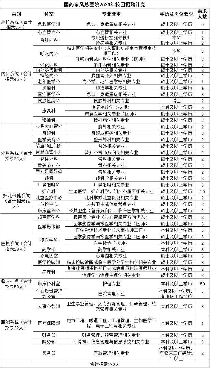 3、学历要求:管理、医技等要求全日制本科及以上学历(应届毕业生);临床类要求硕士研究生学历(应届毕业生);