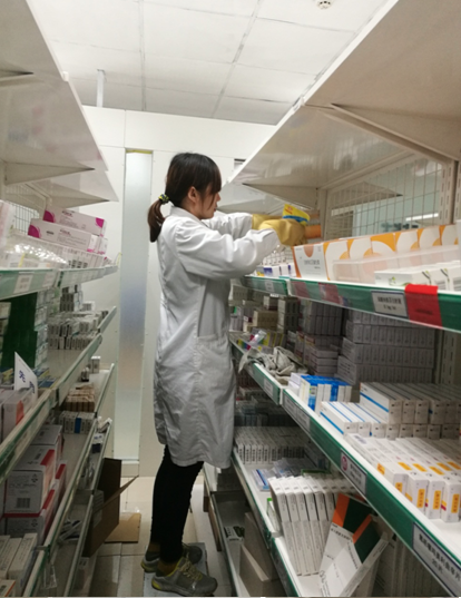 因为门诊药房的工作人员是三班倒,有的药师只有在夜班、连班的间隙一点点清理自己所管理的货柜,有的药师,为了不影响迎评工作,主动加班来清理货架。