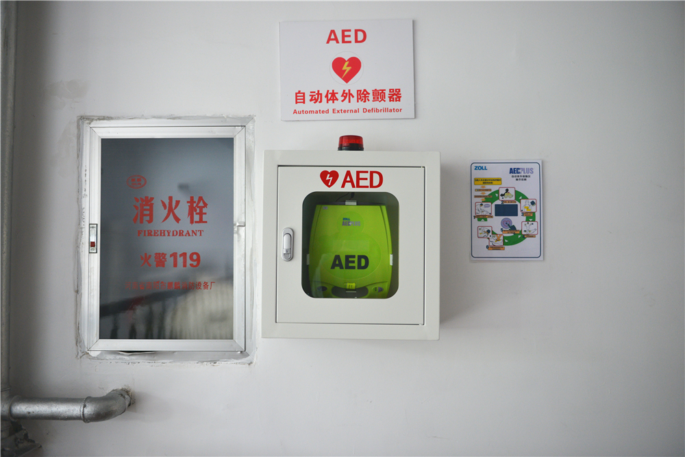 风险无处不在,作为三级甲等医院,国药东风总医院每年有百万人次就诊量,为了进一步保障患者安全,医院于2017年3月购置了11台AED,并设计出最短获取AED的半径,分区安装在门诊系统、住院病区、办公场所等医疗和非医疗公共区域。同时,购置23台标准除颤仪配套安装。医院内每年组织全院范围AED和徒手心肺复苏操作培训,对医护、医技、职能、安保、保洁人员等进行培训和全面普及。