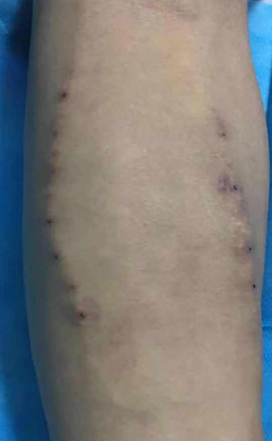 上图即为绳梯式穿刺,此方法适合体型正常或瘦弱的病人,且内瘘扩张均匀、分支少,血管表浅,长度>5cm。
