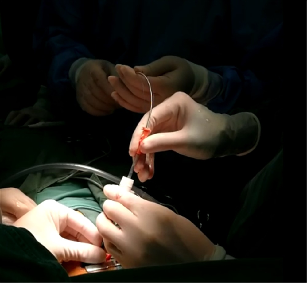 但这个主流方式也有它的缺陷,一个它是全程在介入下面,介入科在X射线的监控下去做,看它导丝的走向。那么,这个就不可避免地患儿他会接受放射线的照射。另一个小孩的血管很细,如果要从血管里进导丝、进鞘管、进封堵器,可能会对血管的内膜造成损伤,甚至血栓、血管狭窄等。这两点,对于年仅两岁的小永来说,是不得不考虑的问题。