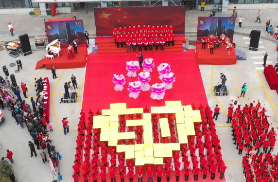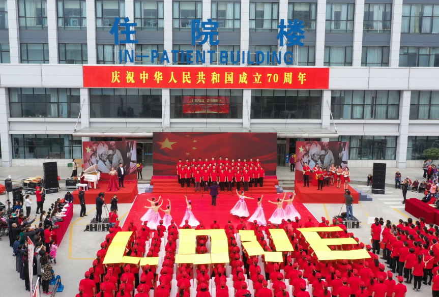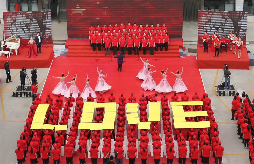 当日下午两点半,合唱比赛在由院领导班子领唱的《我和我的祖国》中拉开序幕。1000余人身穿红T恤,伴随着悠扬深情的歌声,挥动着一面面鲜艳的红旗。由全院十三个党(团)支部、分会组成的巨大方阵,以革命的红色为底色、以温暖的黄色依托,变幻出“LOVE”“不忘初心、牢记使命”等字样,表达对繁荣富强的新中国的浓浓热爱、对总医院扎根十堰五十载辉煌成就的赞颂。