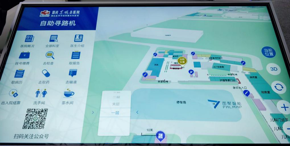 同时,为了让患者更好的使用该系统,院内导航系统设计了多个使用入口,通过APP、医院微信公众号、二维码以及医院导诊大屏都可获得医院智能陪诊导航服务。在医院大厅、电梯口和其它人员密集区域,放置导诊大屏以及部署二维码,让患者切实感受到院内导航带来的便利。(信息中心 毛名望)