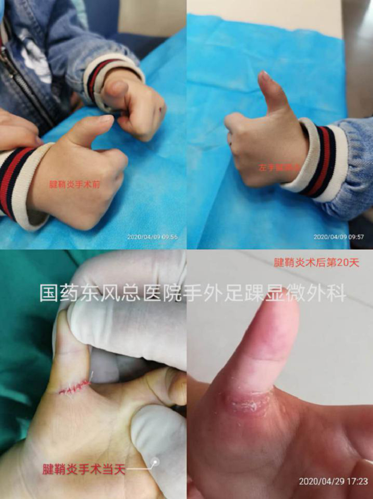近日,国药东风总医院手外足踝显微外科开展了一次日间手术病房,成功地为一例患有严重腱鞘炎,两个大拇指不能伸直的小患者实施手术治疗,术后患者恢复良好。