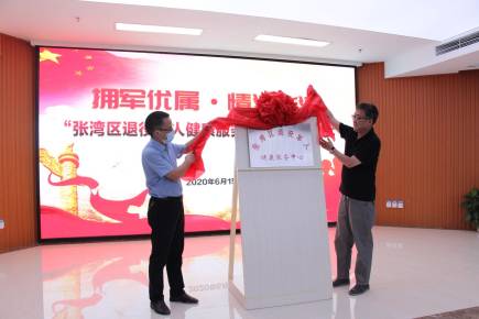 张湾区人民政府副区长肖旭和国药东风总医院院长魏涧,共同为“张湾区退役军人健康服务中心”揭牌