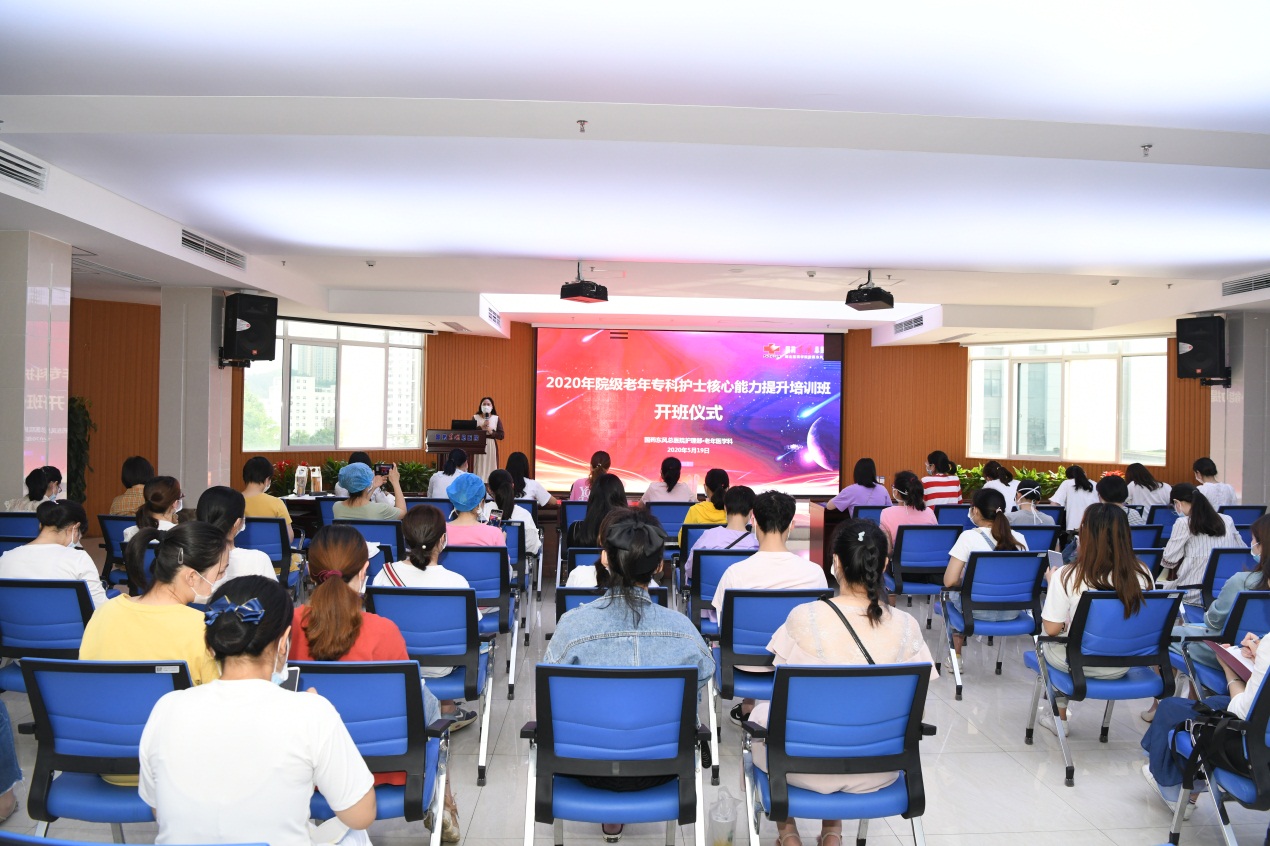 为积极应对人口老龄化,加强老年护理人才培养,提高服务能力,促进老年相关护理技术发展和学科建设。5月19日,国药东风总医院2020年院级老年专科护士核心能力提升培训班在学术厅正式开班。来自全院各科室55名学员参加开班典礼,会议由老年医学科护士长周琴主持。