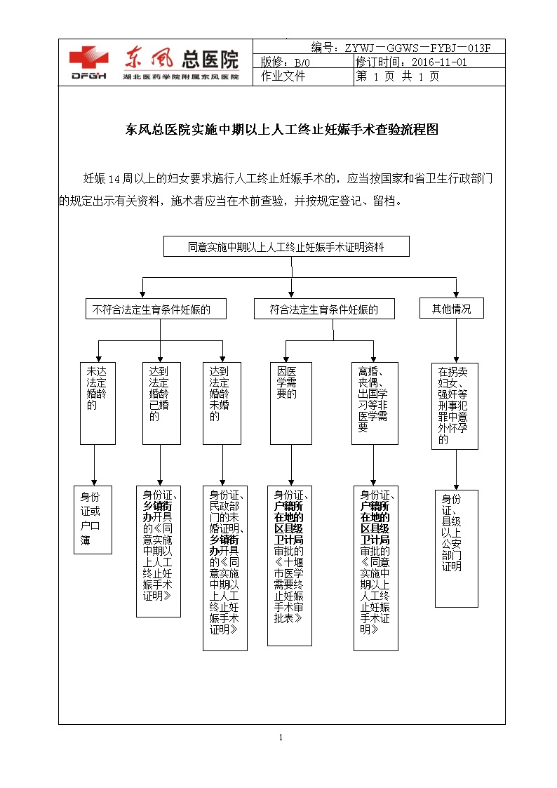 国药东风总医院实施中期以上人工终止妊娠手术查验流程图