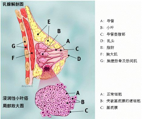 乳腺癌是女性常见的恶性肿瘤,好发于绝经期前后(40-60岁)的妇女。其发病原因至今未完全阐明,可能与以下因素有关:(1)雌激素、孕激素、催乳素等;(2)月经初潮年龄早、绝经晚、不孕等;(3)遗传;(4)局部受到过放射线照射;(5)营养过剩、肥胖、高脂肪饮食等。