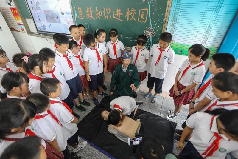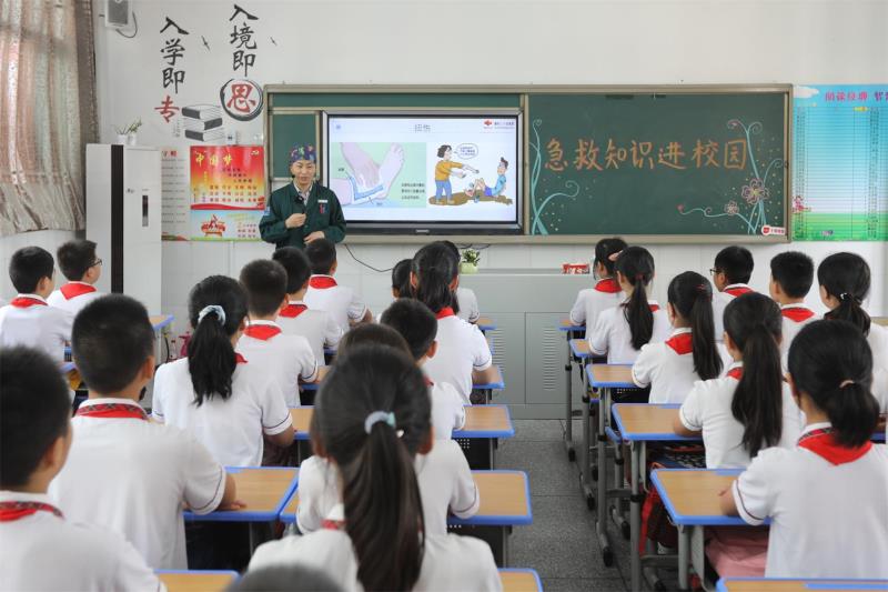 在今年的“世界急救日”来临之际,国药东风总医院急救医学部主管护师、绿光急救队队员李璞,走进十堰市柳林小学六(8)班,为孩子们开展了一堂生动实用的急救知识培训课。李璞选取鼻出血、抽搐 、扭伤、骨折、中暑、气管异物梗阻等常见的紧急突发情况,声形并茂地讲解“儿童校园常见危险急救策略”,同时现场演示教学“徒手心肺复苏”,让孩子们在轻松愉快的氛围中掌握基本救护知识和急救操作技能。