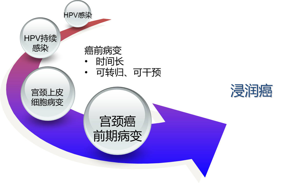 2009年世界卫生组织(WHO)认定14种人乳头瘤病毒(HPV)高危型的持续感染是导致宫颈病变和癌变的主要原因。从HPV感染到发生癌前病变,进而发展到宫颈癌,一般需要5-12年时间。在这个过程中可以通过进行宫颈癌筛查,及早发现宫颈癌前病变,给予适当的治疗,可以阻止病程的发展。如果忽视宫颈癌筛查,则会错过最佳的治疗时机。宫颈癌筛查包括HPV检测和宫颈细胞学检查。