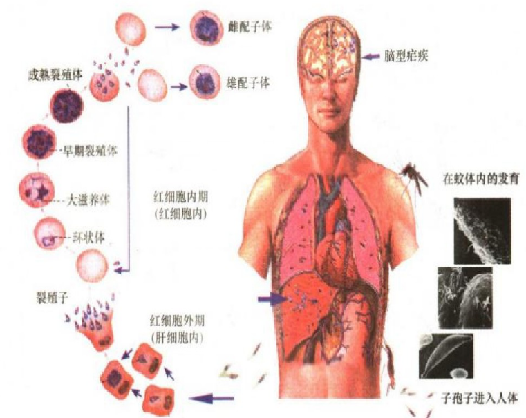 疟疾(Malaria)是由疟原虫寄生于人体肝细胞和红细胞内而引起的一种寄生虫病,俗称“冷热病”、“打摆子”、我国古代也称为“瘴气”。