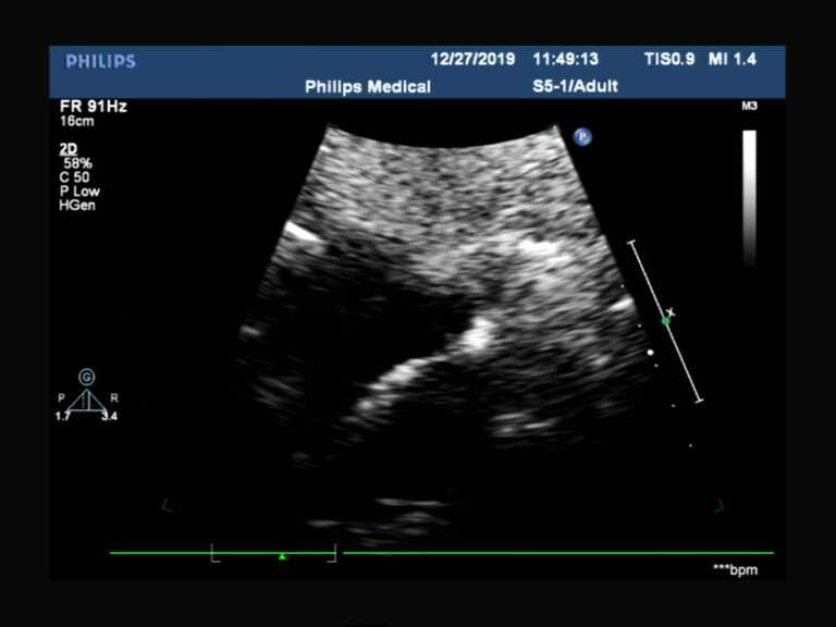 图一、图二高度怀疑卵圆孔未闭,结合临床表现(如不明原因头疼、青年人群的腔梗),建议经食管超声心动图和右心声学造影,下图为此患者诊断卵圆孔未闭提供了进一步的依据(右心声学造影见右向左大量微气泡)