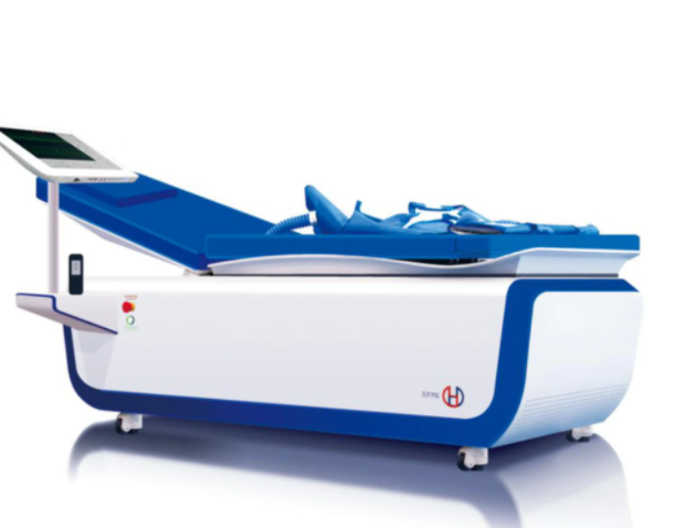 体外反搏是以人体的心电R波为触发信号,在心脏舒张期,自肢体远端气囊向近端气囊依次充气,压迫肢体,迫使肢体和臀部动脉血液返流至主动脉,以提高主动脉的压力和血容量,从而增加心脑肾等重要器官的血液灌注量。在心脏收缩期前,气囊迅速排气,受压的肢体血管突然放松,外周阻力急剧下降,有利于心室射出的血液经主动脉快速注入肢体动脉。以此按心动周期不断重复的工作达到其治疗的目的。