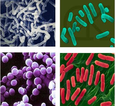(左上)双歧杆菌,(右上)乳酸杆菌,(左下)肠球菌,(右下)大肠杆菌