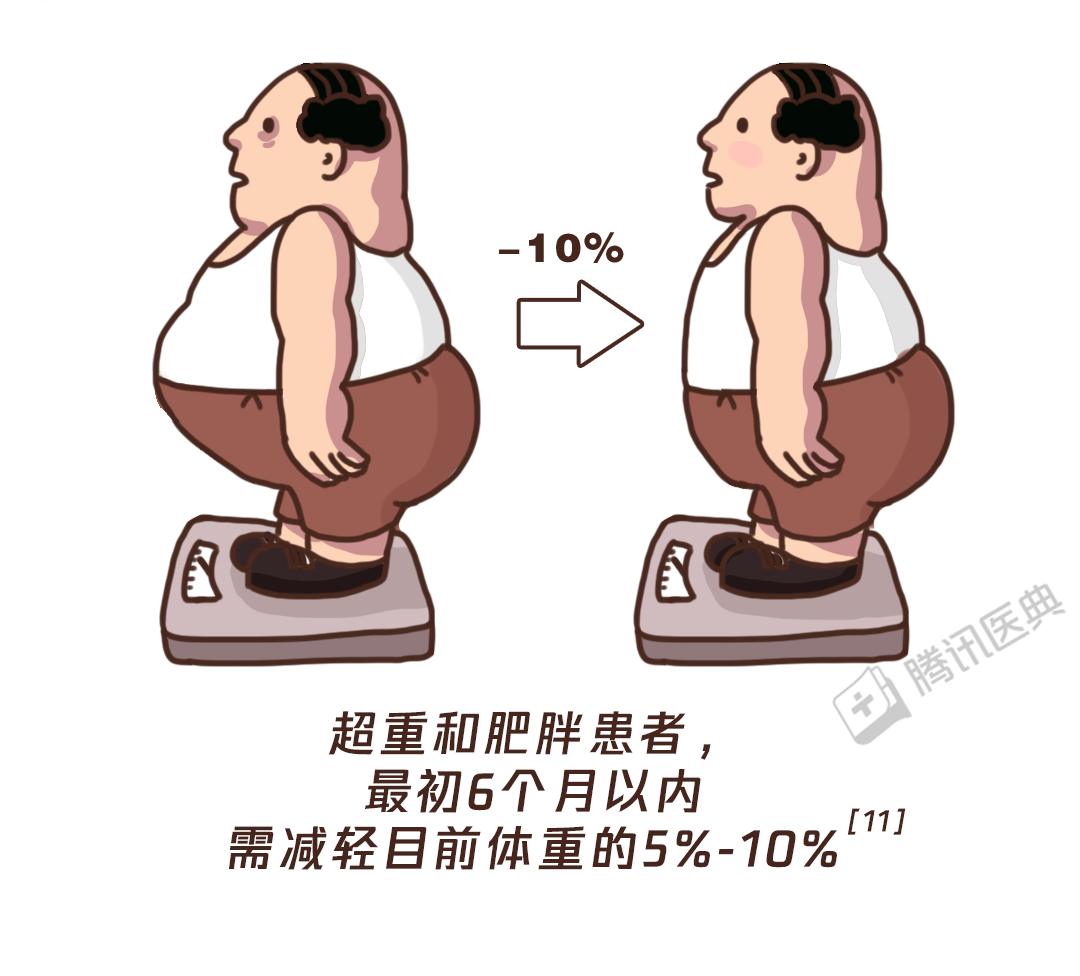 超重和肥胖患者,最初6个月以内,需减轻目前体重的5%-10%。