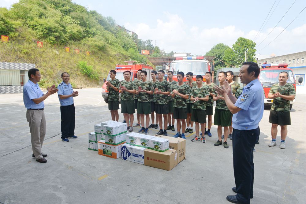消防大队长阮子建、中队教导员梅波代表中队十余名消防战士欢迎庞光明院长一行。庞光明感谢中队官兵为全市人民生命财产安全和经济建设发展提供了强有力的安全保障。