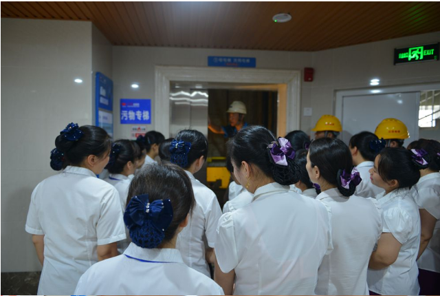 7月4日,国药东风总医院医疗保障部开展电梯突发事故应急演练。下午15:00,电梯维保人员模拟D座5号电梯故障,现场带领门诊、住院部司梯员到顶层盘查维修,并讲解如电梯内有被困人员,应如何给予情绪疏导和安全指导。(黄小凡)