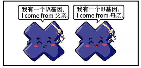 图2:顺式AB型,IA基因和IB基因变成到一条染色体上。