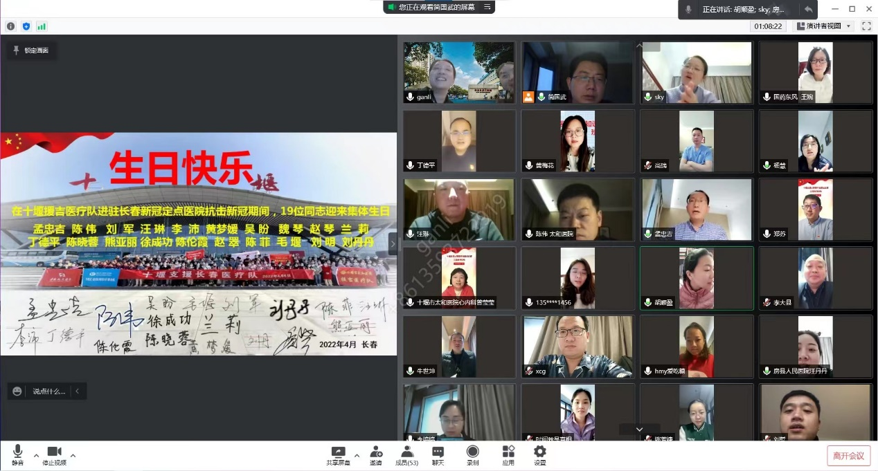 4月21日下午,十堰支援长春医疗救援党支部43名党员及各医疗小队组长,通过腾讯线上会议形式,举行了首次主题党日活动。