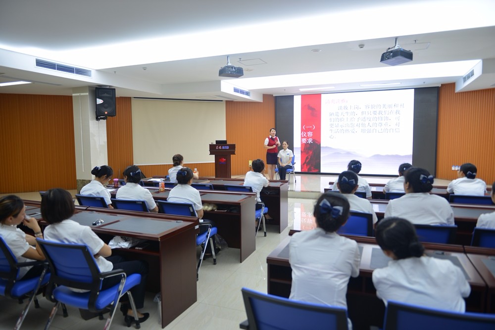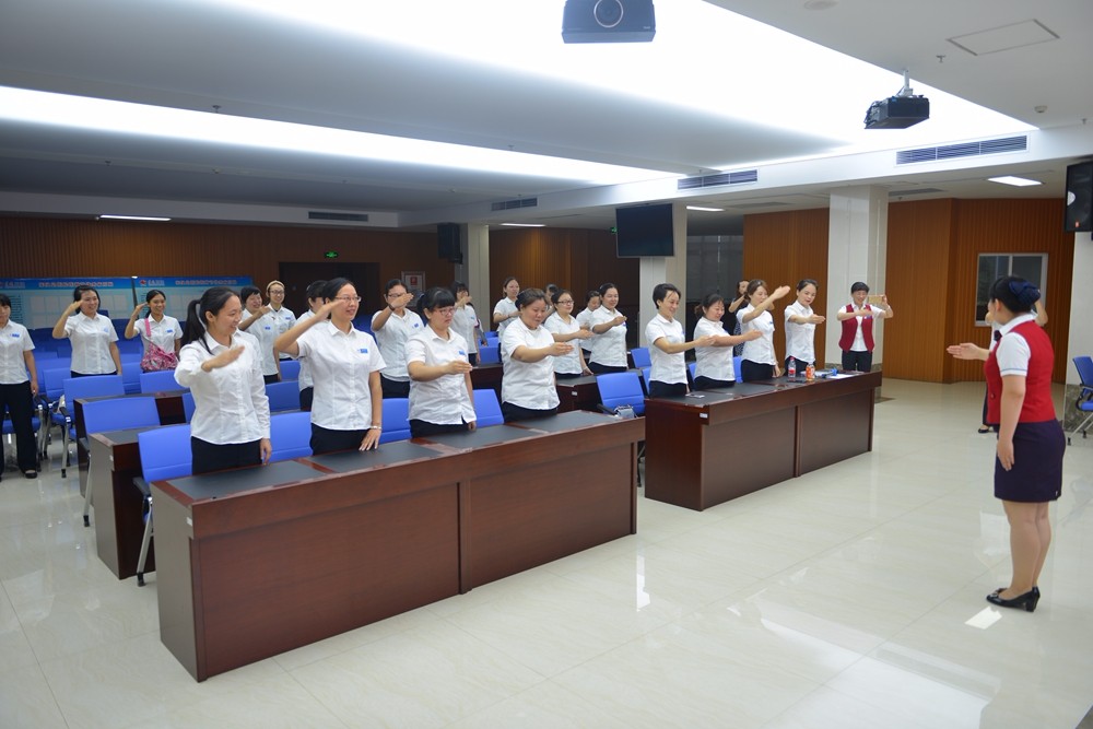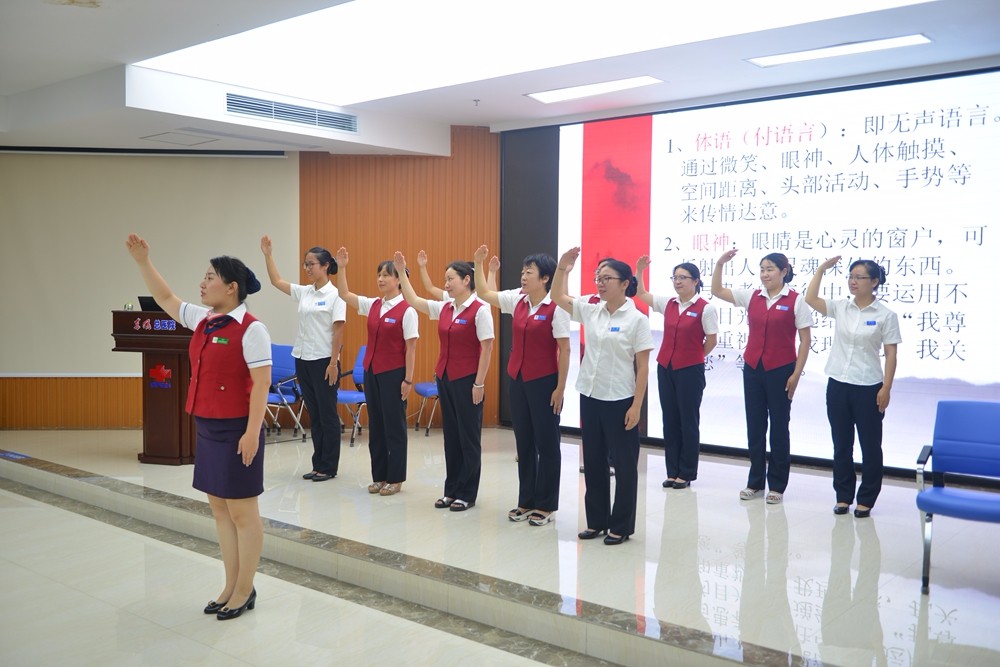 培训老师针对窗口服务礼仪、站姿、坐姿、手势、接待语言、微笑服务等对参培人员进行了示范培训,并对参培人员的着装、仪表、行为规范进行了现场点评。