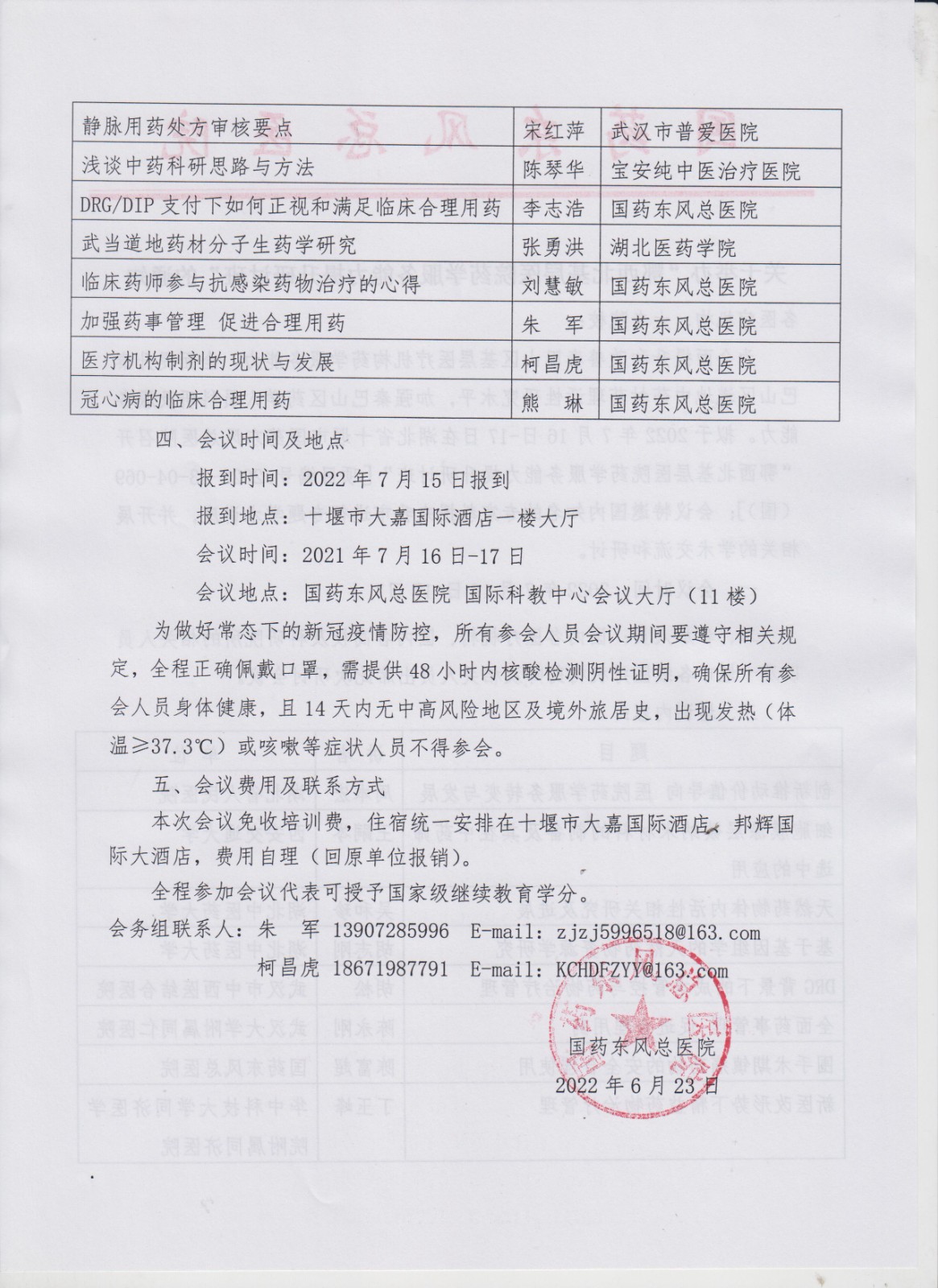 二、参加人员:国内各医疗机构、国内各高校及科研院所的相关人员以及十堰市各级医疗机构药师及相关人员出席此次研讨会议。