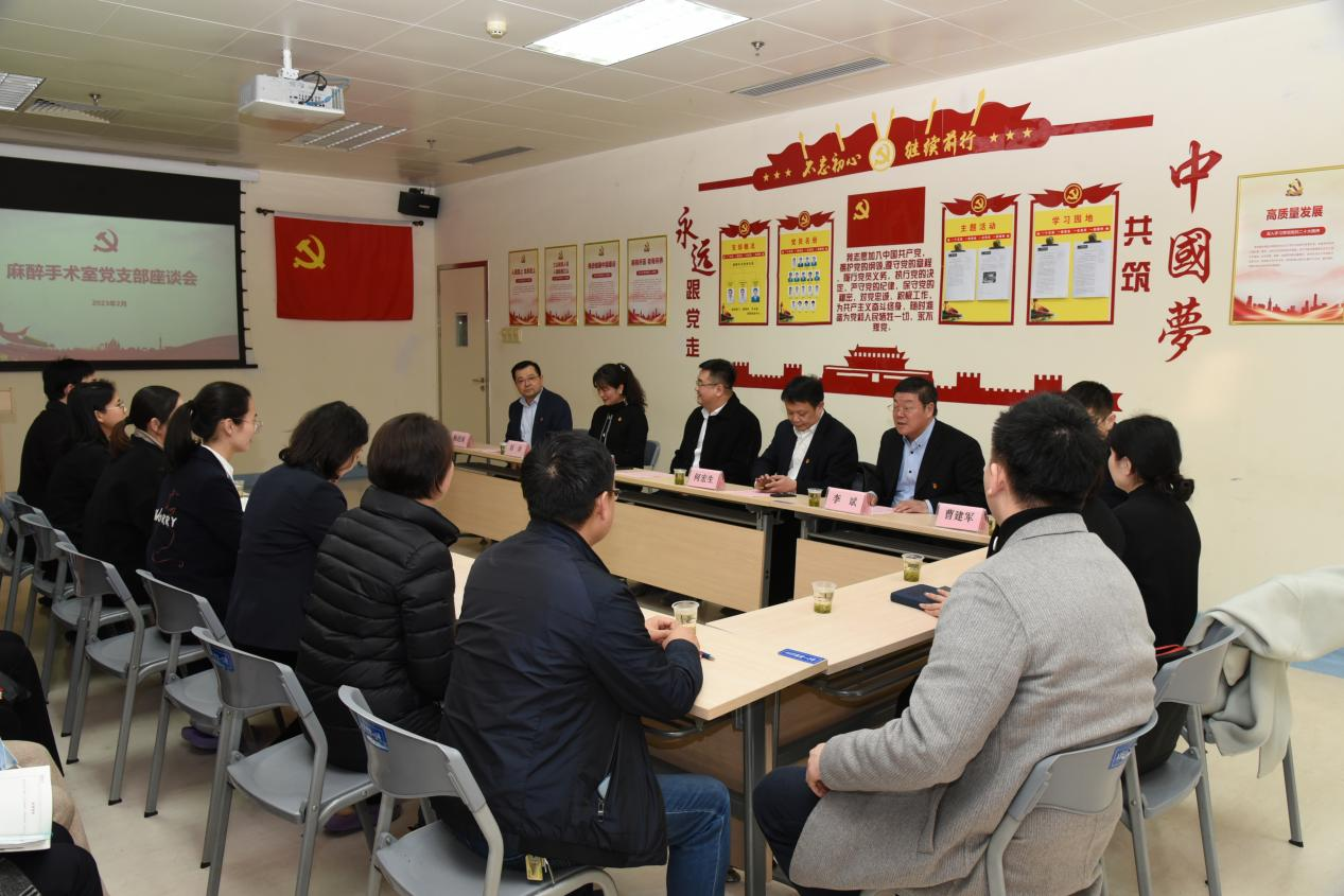 2月9日下午,国药医疗党委副书记、总经理孙建,党群工作部部长刘洋,国药华中党委副书记(主持工作)、董事长何宏生一行莅临国药东风总医院,在联系点麻醉手术室党支部召开座谈会。国药东风总医院党委书记李斌、外科第一党总支部书记曹建军、相关职能部门负责人、麻醉手术室党支部全体党员参加座谈。
