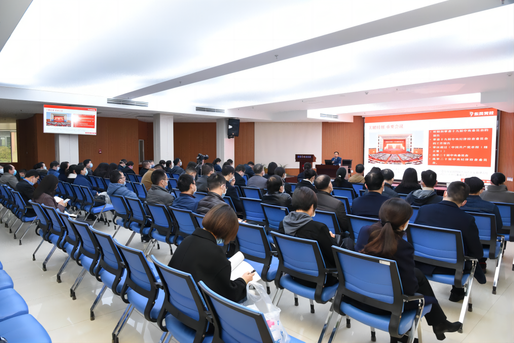 11月16日下午,国药东风总医院党委理论中心组召开集体学习(扩大)会,会议邀请东风党校副教授、湖北省党校系统经济管理副教授柯盛华作题为《继往开来的大会,迈向复兴的蓝图(二十大精神总讲)》专题授课,全体院领导及各党总支、党支部书记和委员参加。会议由党委书记李斌主持。