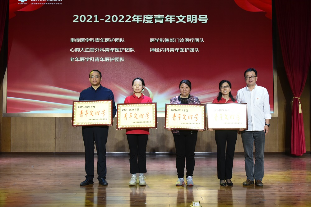 比赛结束后,院党委副书记、纪委书记、工会主席葛琼宣读《关于表彰2021-2022年度团的先进集体和先进个人的决定》,医院对在2021年度涌现出的青年文明号、五四红旗团支部2个先进集体,青年岗位能手、优秀共青团干部、优秀共青团员、优秀志愿者4个先进个人予以表彰。