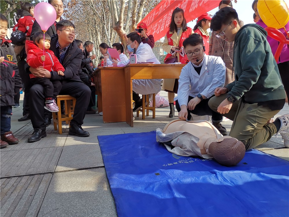 早上八点半,由国药东风总医院内分泌科、神经内科、康复科、皮肤科、胃肠外科等医护专家及志愿者组成的义诊团队已经在青年广场前就位,醒目的白大褂成了初春里一道亮丽的风景线,很快就吸引了不少过往行人的目光,义诊台前一时间门庭若市。戴着小红帽的志愿者们一边沿着广场发放各类的健康科普宣传页,一边为义诊的行人们进行引导疏通。医护人员们还在广场边办起了临时讲堂,对路过的行人进行现场心肺复苏术教学,让大家在近距离听课的基础上还可以亲自动手实践,真正将急救知识印入脑海。CPR教学过后,美丽的白衣天使带领着志愿者和行人们在现场做起了肩颈保健操,简单的几个动作却是久坐族、低头族的福音,简单易学又不限场地,长期坚持对肩颈大有益处。