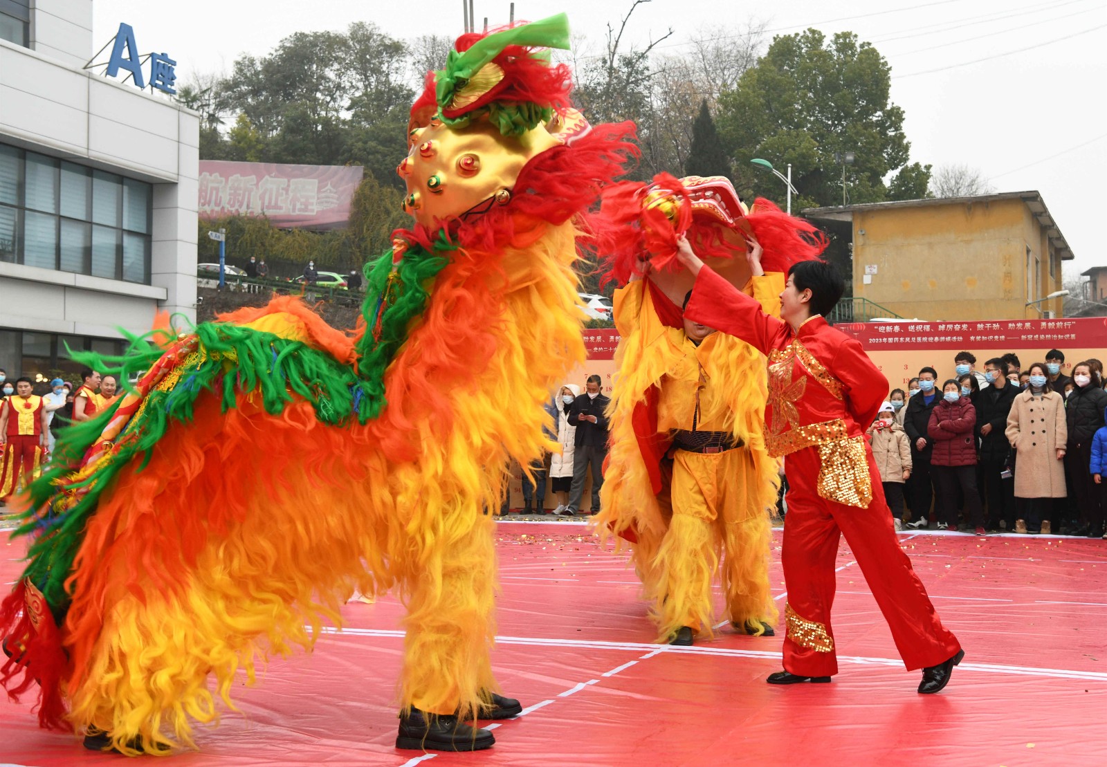 随后,医院领导和各位来宾向全院职工及家属、患者拜新年,送上吉祥物。