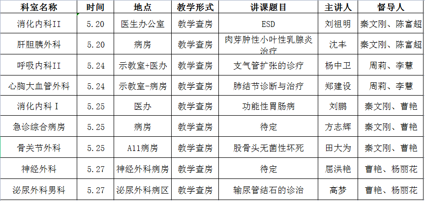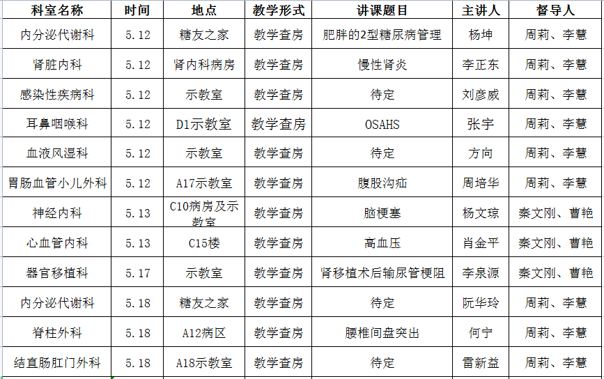 1、请各专业基地、科室高度重视院级督导工作,积极配合,认真落实教学活动。