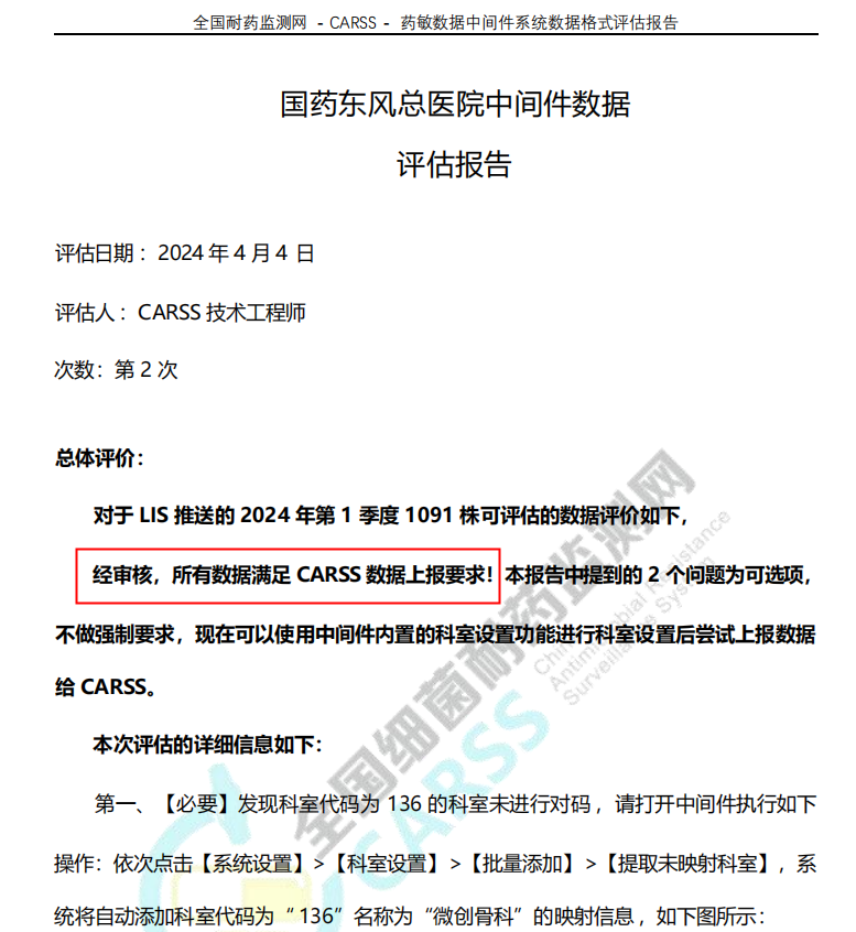2023年底,国药东风总医院医学检验部积极进行试点单位申报,最终以其数据质量在同行业中的领先地位以及细菌耐药监测网(CARSS网)、真菌监测网(ChiFungi)、致病菌识别网核心网点等优势成功入选CARSS中间件应用试点单位。