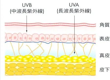 紫外线简称UV,会对人体肌肤造成损害的成分主要包括UVA和UVB。UVB会把肌肤晒伤,UVA会把肌肤晒黑、“晒老”。UVB的强度会随着季节和气候的变化而变化,冬天较弱夏天最强,UVA的强度较稳定,一般不随季节和天气变化。