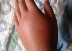 蜂毒过敏:对蜂毒过敏的伤者,蛰伤后可立即出现荨麻疹、喉头水肿、哮喘、甚至支气管痉挛,重者可因过敏性休克、窒息而死亡。