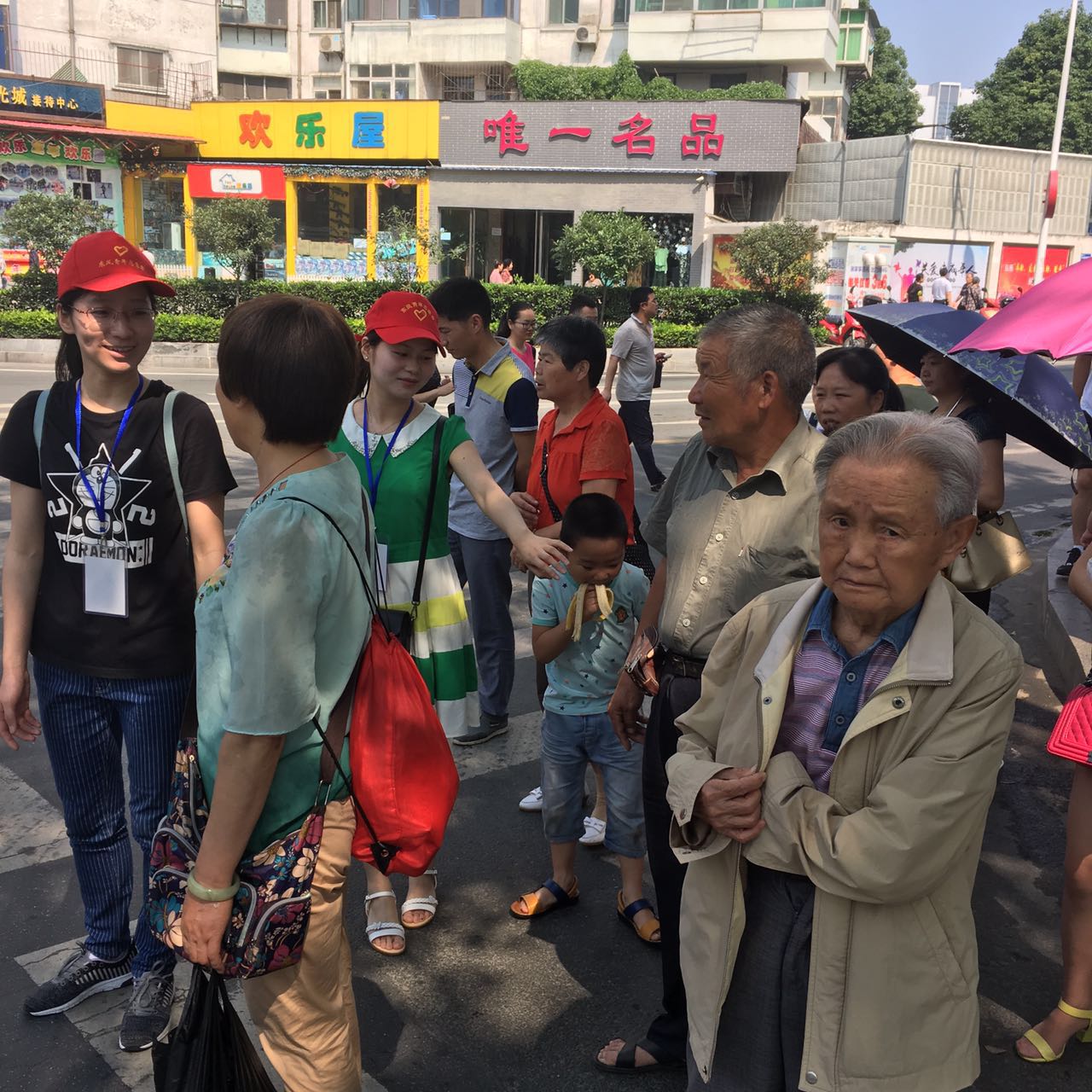 上午8:30-10:00,下午5:00-6:30,正值人流高峰期,公园路上车水马龙。国药东风总医院志愿者们分布在六堰红绿灯、公园门口红绿灯、大岭路口红绿灯等处的人行横道两侧,引导行人文明过马路,协助维护交通秩序,对欲违规过马路的行人进行及时劝阻并耐心劝导其遵守交通规则,对老人、小孩、行动不便者给予热心的帮助并协助其通过人行通道。通过共同努力,十字路口的出行秩序井井有条。