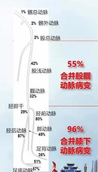 糖尿病性血管病变不仅累及大中动脉,更多涉及膝下中小动脉,主要表现为血管中膜钙化、节段性狭窄或闭塞。