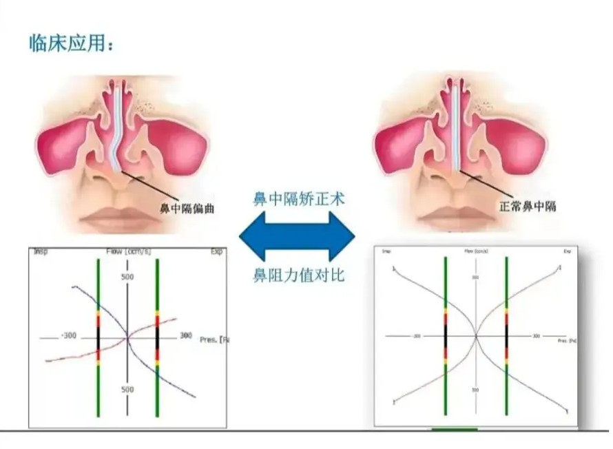 它是一种被用来客观评估鼻腔通气阻力的仪器,该方法有较高的准确性和可重复性, 经常被用于临床和科研中来评价鼻腔的通畅程度。不同阻力值预示不同的阻塞程度:正常、轻度、中度、以及重度阻塞。相较于其他鼻科检查,其优点为快速、客观、准确、无创。可以对鼻腔气流进行动态评估,在疾病的诊断、治疗的选择等方面发挥着作用。