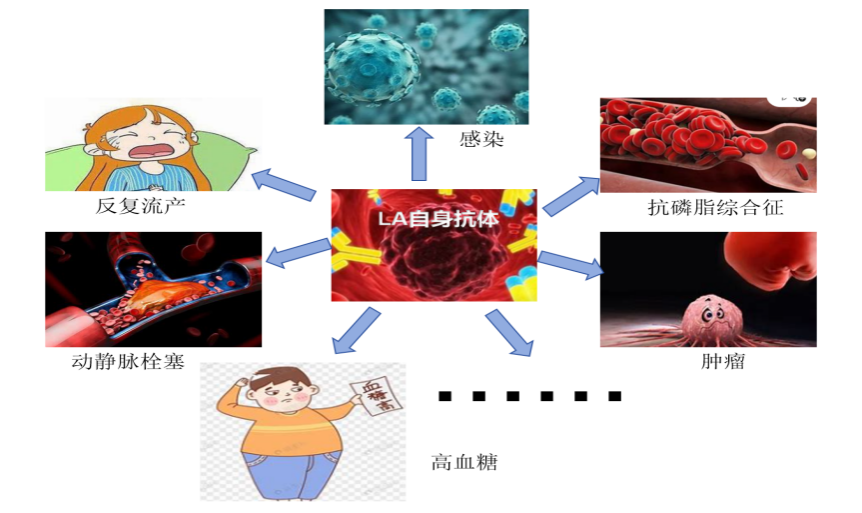 某些感染、血液疾病、一些恶性肿瘤、肝炎、糖尿病等患者体内也可能检测到LA,如病毒感染,可能会触发免疫系统产生异常反应,或慢性炎症和血管损伤有关,导致LA的产生。