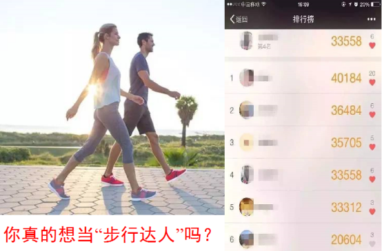 随着朋友圈“微信运动”功能的流行,越来越多的朋友加入到“步行大军”中来。为了占领朋友圈其他朋友的“头版头条”,不少人不惜改变上下班的方式,徒步往返。更有甚者,为了“秀出”自己的步数超人一等,更是“加班加点”地在小区、公园里“暴走”,摆出了一副“不拔头筹,誓不罢休”的态势。的确,吃动平衡,步行为先。要拥有一个健康的身体,除了科学饮食外,运动也很重要;而步行正是大众喜欢的一种运动方式,它简单易行,老少皆宜,轻松参与。但是,只以步数作为衡量运动量的标准的话,反而会适得其反,有百害而无一利。