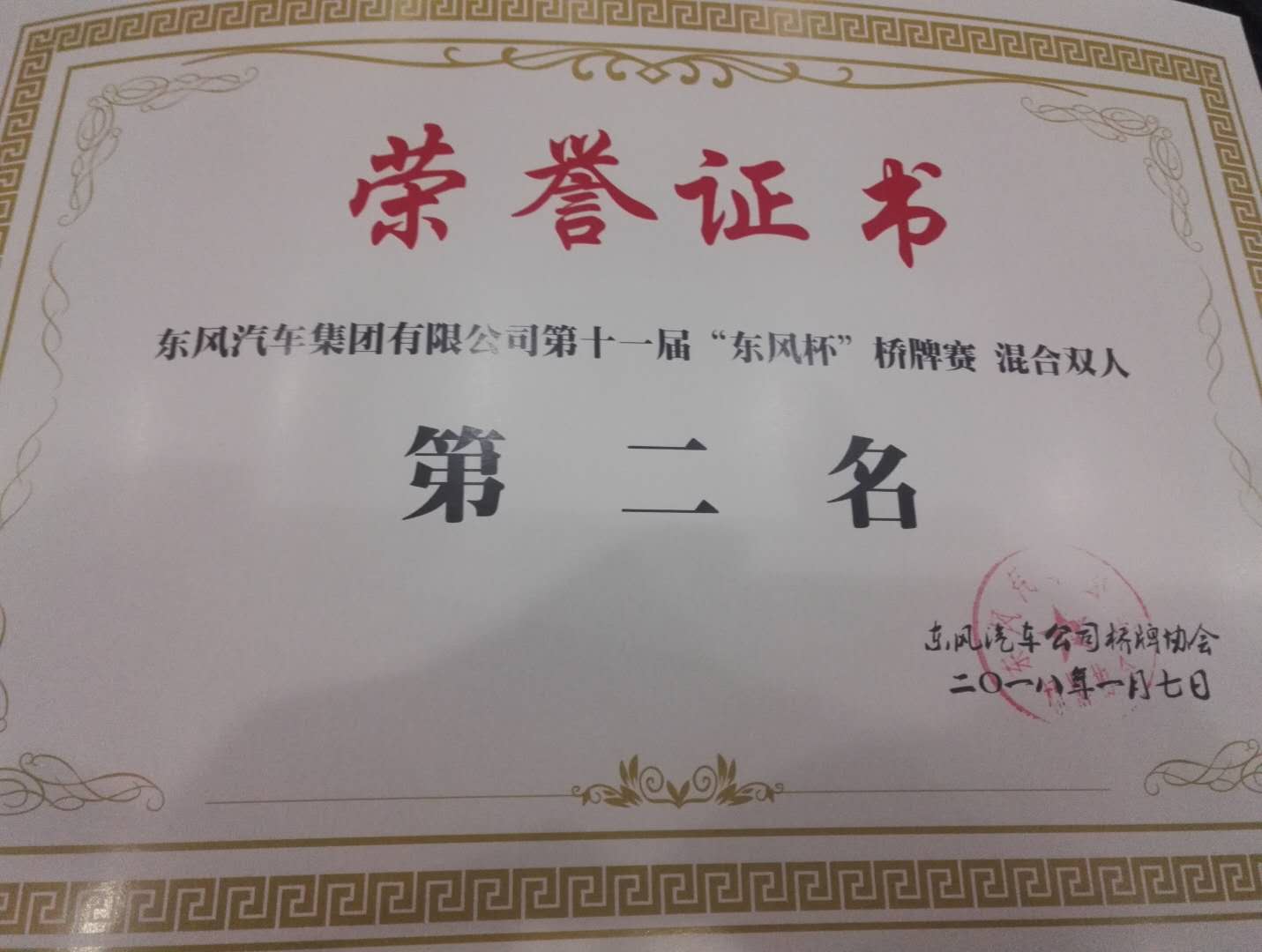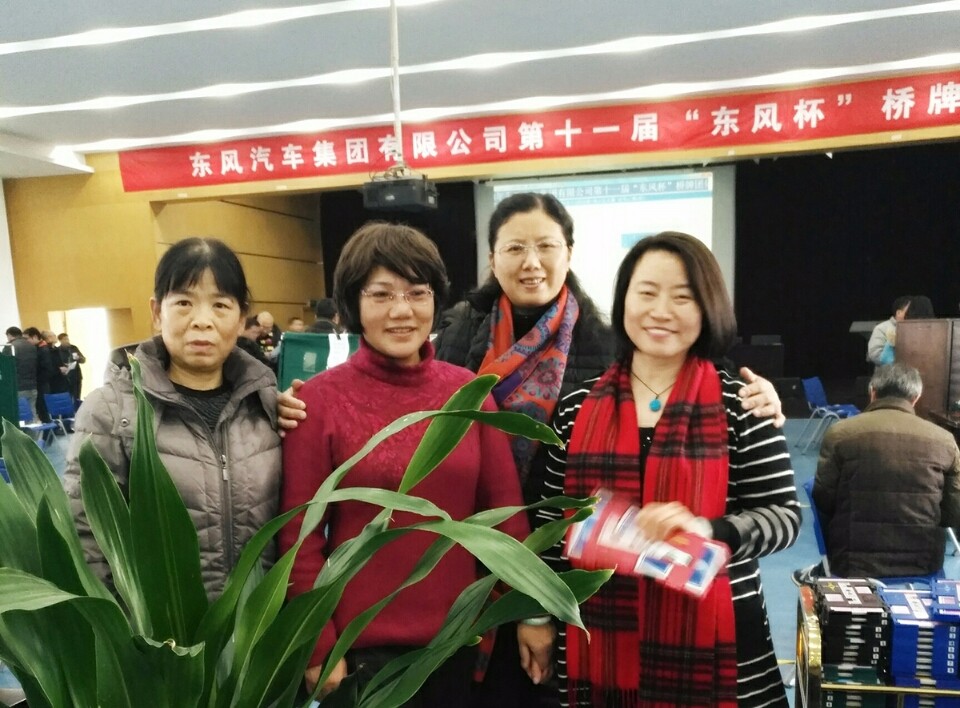 东风汽车集团有限公司第十一届“东风杯”桥牌赛,于2018年1月6-7日在武汉举行。国药东风总医院桥牌协会选派了男子团体和女子团体两支队伍参赛。经过激烈角逐,国药东风总医院“女子团体”喜获冠军,同时男女混合双人赛分别获得第二和第四名的好成绩。据悉,国药东风总医院“女子团体”在前几届比赛中曾获得过二等奖和三等奖,此次在2018年第一场雪到来之时,圆了“女子团体”的冠军梦。(张拥娥)