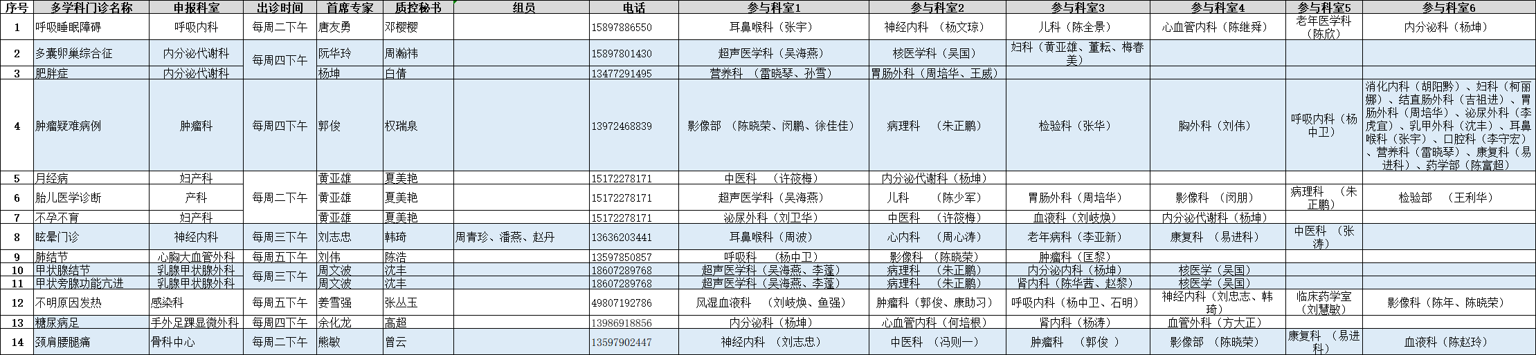 多学科门诊汇总