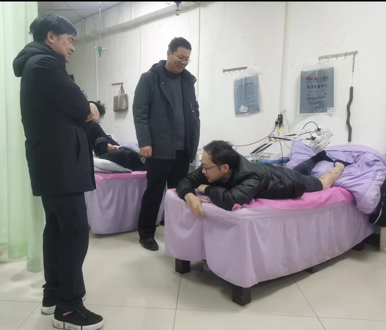 2月份的一个深夜,磁共振检查室主管技师李亚塞面对一位绝对卧床的体重200斤以上的患者,但陪同的家属却只有一名男士和一位白发苍苍的老奶奶,面对病床和轮椅等助力工具均不能进入磁共振检查室的限制条件,又是深夜的最后一个患者及家属渴望早检查,早治疗的迫切心情,在克服重重困难后仅凭两个男人的力量把一个200多斤的绝对卧床患者从磁共振门口抬到检查床上,检查后又用尽洪荒之力把病人抬出来,由于用力过猛,导致李亚塞腰椎髓核脱出,压迫腰骶神经,双下肢无力,无法下地行走,在医院接受康复治疗,主任赵年第一时间带领磁共振主任闵朋、技师长张勇看望李亚塞,并叮嘱他安心治疗,好好养病,无论遇到任何困难,科室一定会尽全力支持,让英雄无后顾之忧。