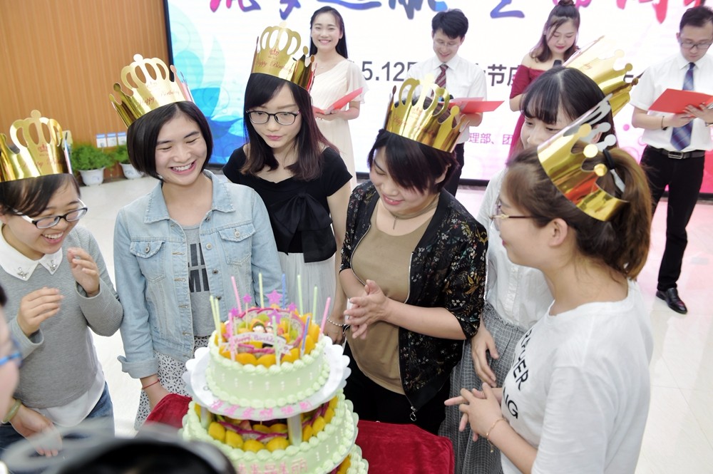 欢笑与泪水齐飞、感动与惊喜交叠。文艺汇演临近尾声,在《祝你生日快乐》的歌声中,护理部主任李玲、团委师小兰推出巨型蛋糕,为10位在等级评审期间过生日的医护人员补过生日。